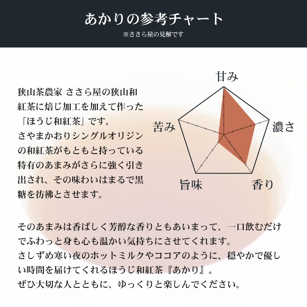 狭山茶農家 ささら屋の狭山和紅茶に焙じ加工を加えて作った「ほうじ和紅茶」です。