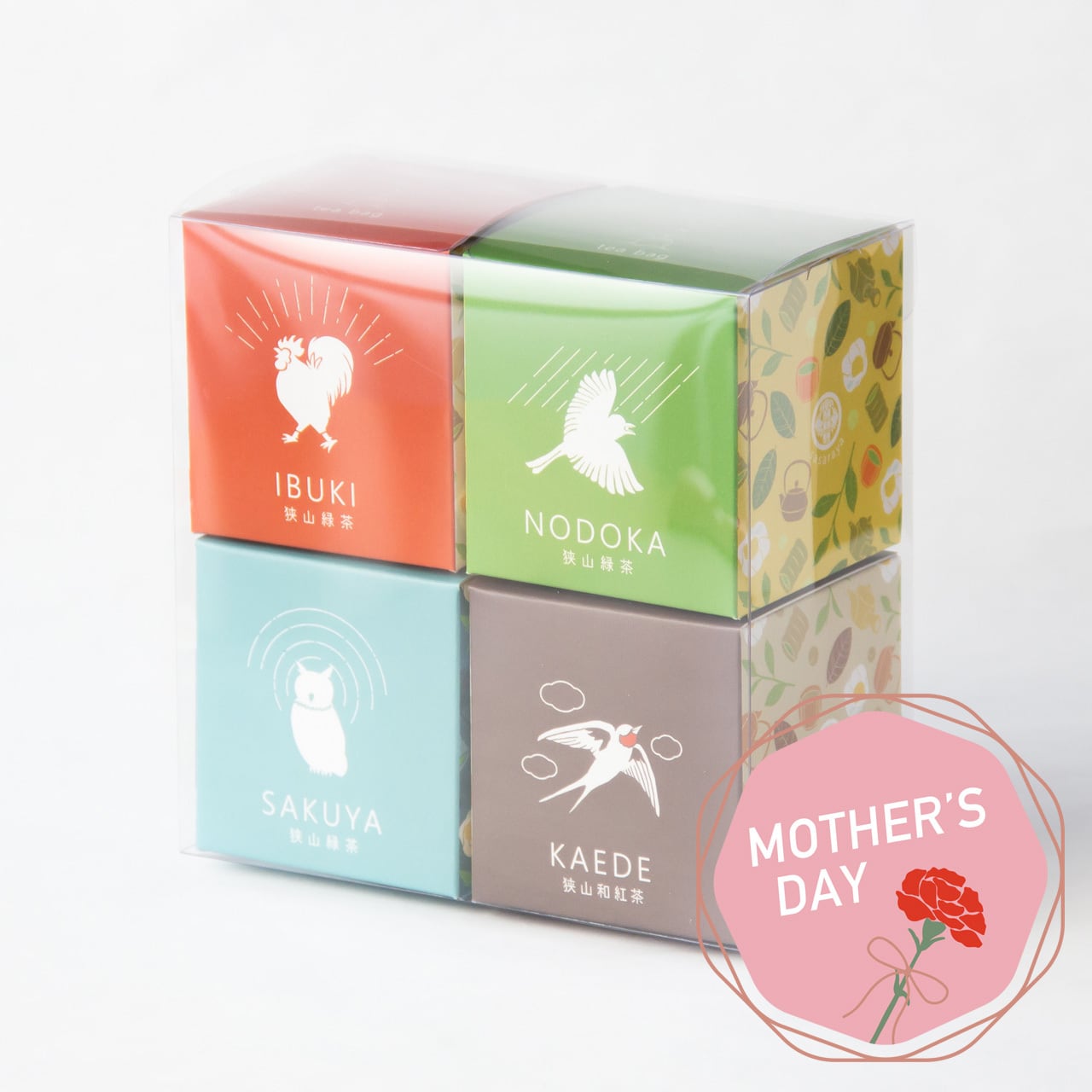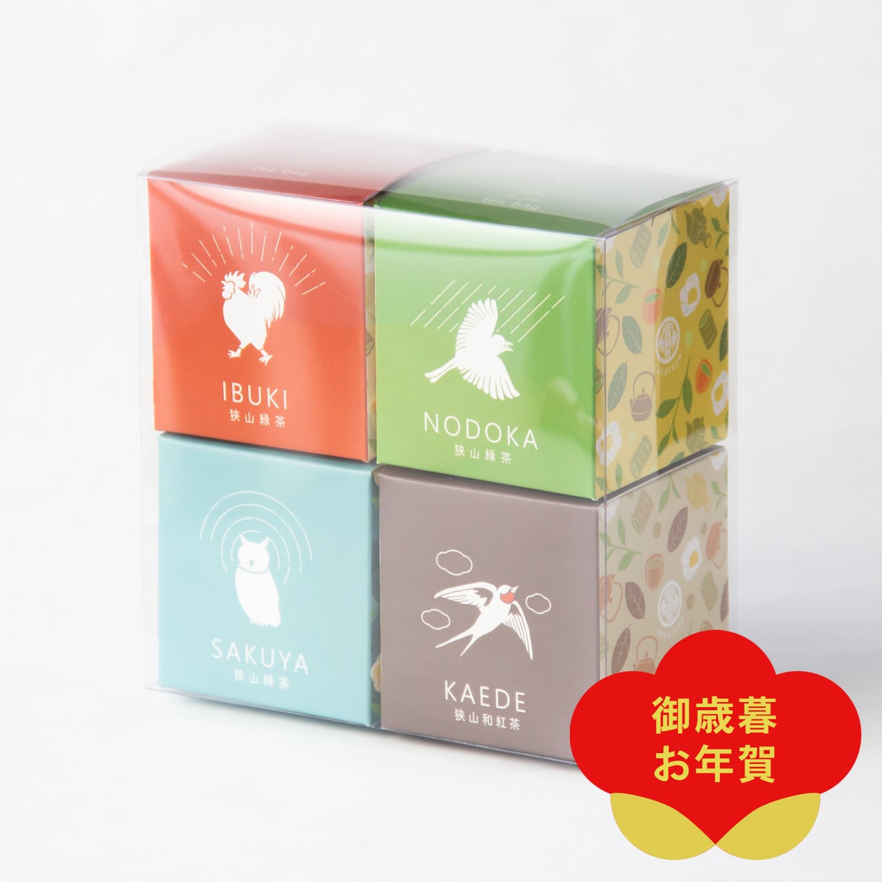 ティーバッグ5つ入りのキューブボックス『いろとりどり』シリーズ全6種類から4種類を組み合わせてセットにしできるギフト商品です。