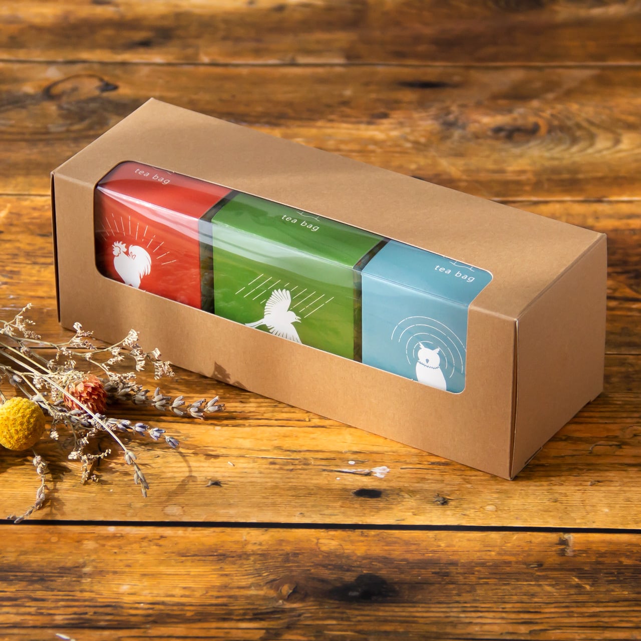 3つセットでお渡しするもよし、セットをばらして複数人で共有するもよし、大切な方たちへのプレゼントにぜひ、ティーバッグキューブ『いろとりどり』をご利用ください。