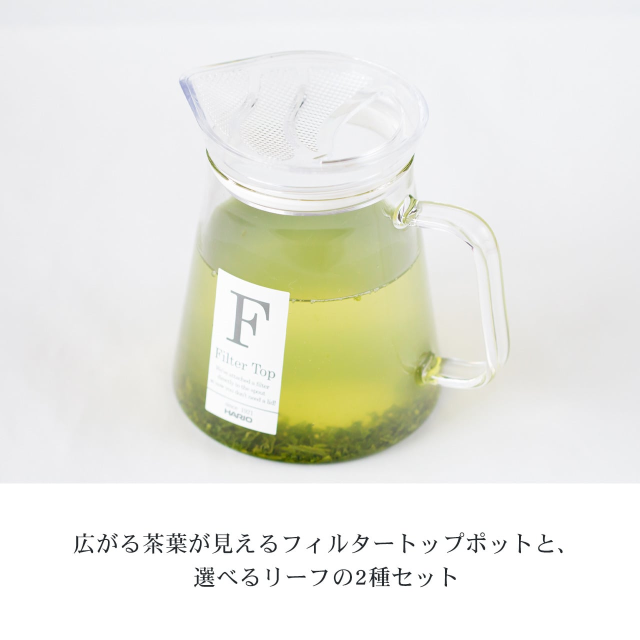 透明のティーポットはお茶を淹れた時の水の色がはっきりと見えるため、ゆっくりと抽出される美しいお茶の色味で視覚的にも癒されます。