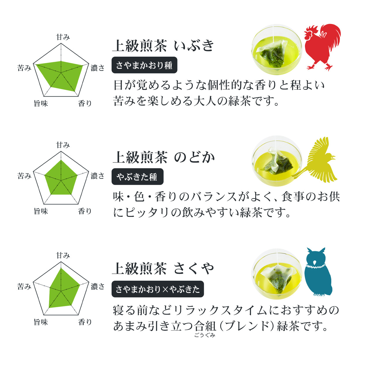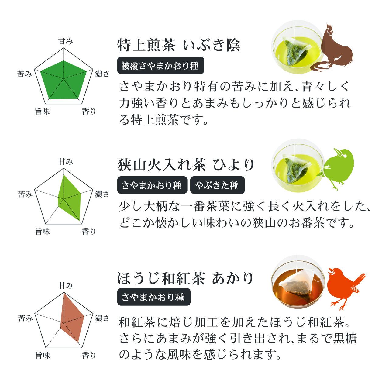 こちらの『SASARAYA ALL STAR!ささら屋のお茶飲み尽くしコース』は、本格的な狭山のお茶を手軽に楽しめるティーバッグ10個入りをぜ~んぶまとめたお得な福袋です!